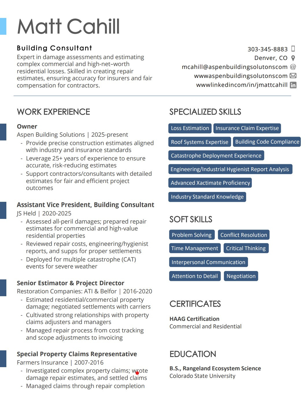 Expertise in resolving complex commercial and residential claims.